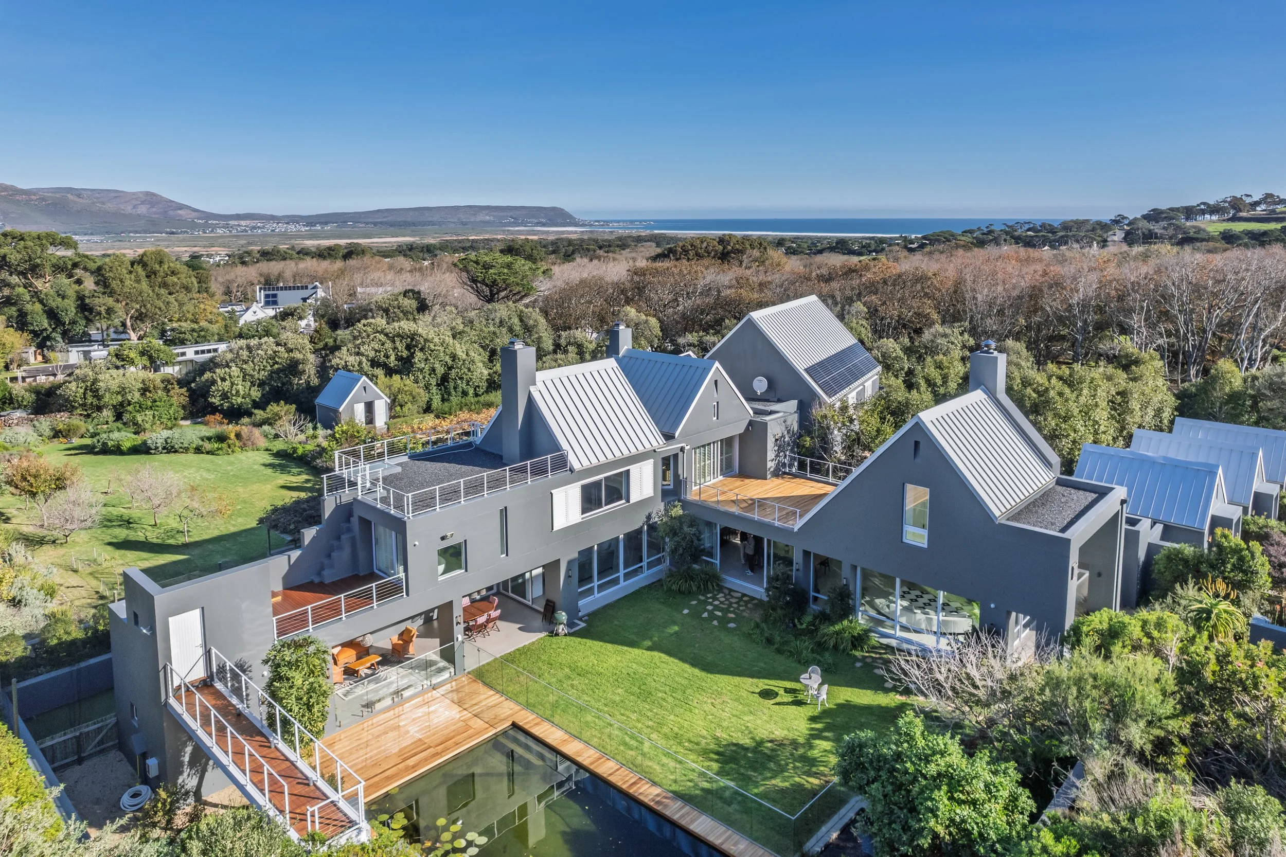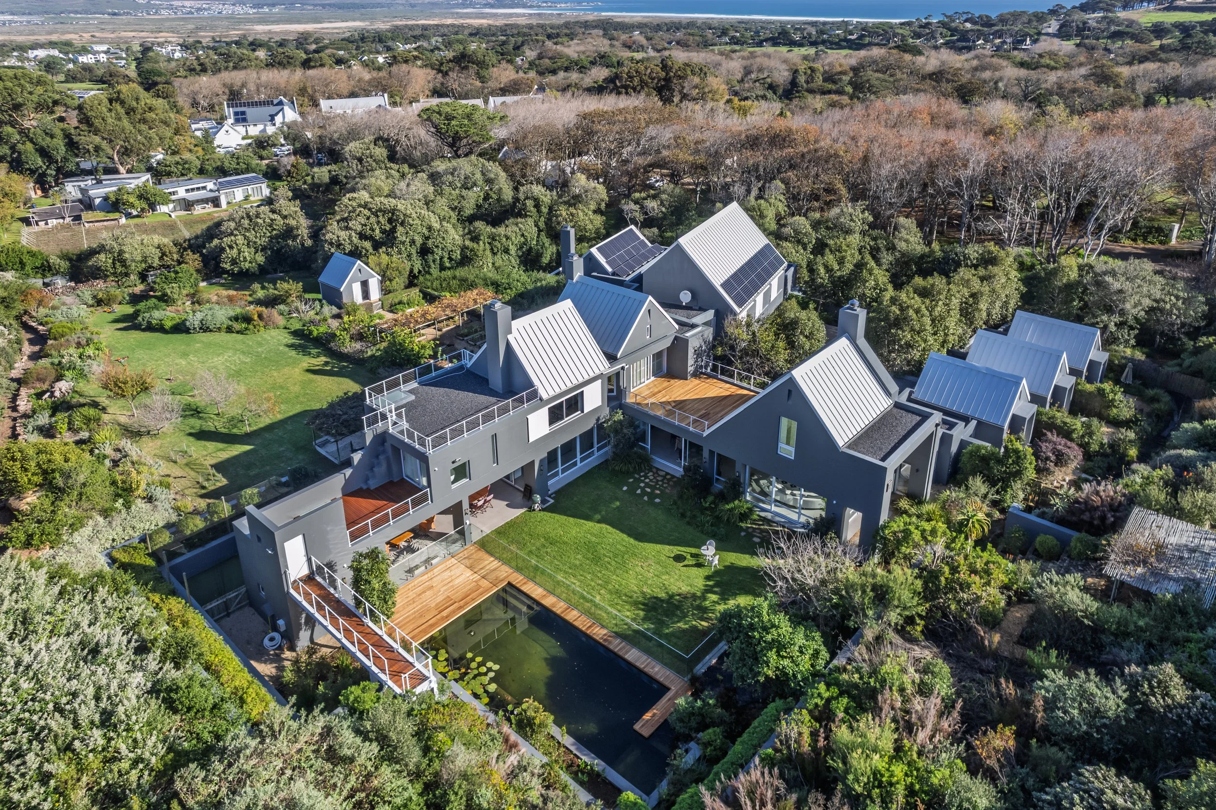 Step outside onto the expansive outdoor spaces, where you’ll find multiple sun decks perfect for basking in the sun or enjoying a glass of something chilled as the evening sets in. The large, beautifully landscaped gardens are a feast for the senses, filled with vibrant flowers, fruit trees, and quiet nooks for reading or simply soaking up the peace. Take a dip in our eco pool — a refreshing, chemical-free oasis that blends seamlessly into the natural environment.
