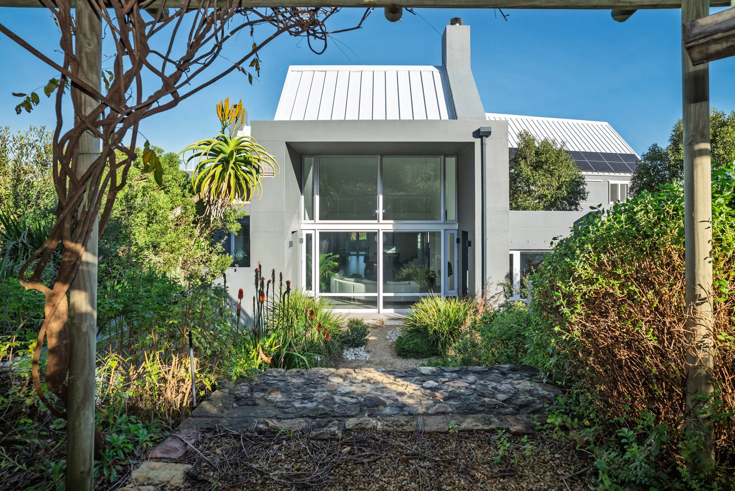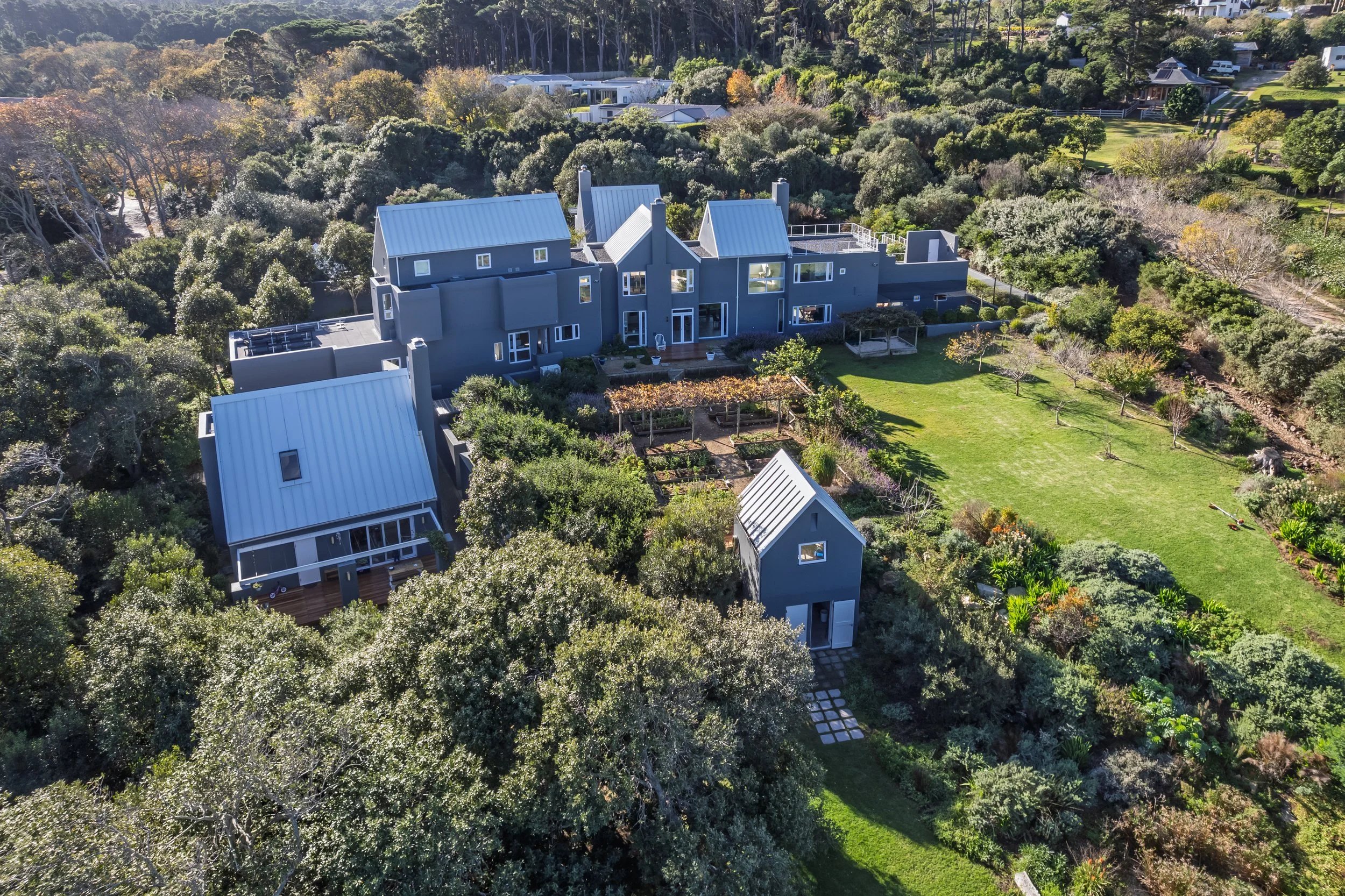 Escape to our unique, off-grid eco-retreat with stunning gardens, an eco pool and spacious outdoor decks. Enjoy luxurious, light-filled interiors, a rooftop sun deck, sauna, and peaceful gardens. On-site staff and groundskeeper ensure a relaxed stay, with options for full or self-service. Perfect for reconnecting with nature, relaxing in style, and experiencing sustainable living in a warm, comfortable, and truly one-of-a-kind home.
