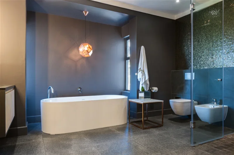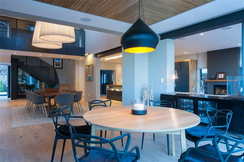 The beautifully furnished living and dining areas are filled with both South African and European art pieces. Stackable sliding doors create a seamless and exceptional flow from indoor to outdoor living spaces with the areas blending into one.